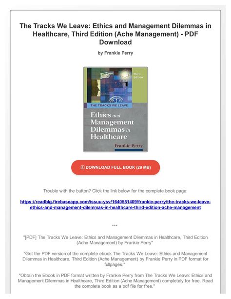The.Tracks.We.Leave.Ethics.in.Healthcare.Management Ebook Epub By Click Button. The.Tracks.We.Leave.Ethics.in.Healthcare.Management Ebook it’s easy to recommend a new book category such as Novel, journal, comic, magazin, ect. You see it and you just know that the designer is also an author and understands the challenges involved with having a good book. You can easy klick for detailing book and you can read it online, even you can download it